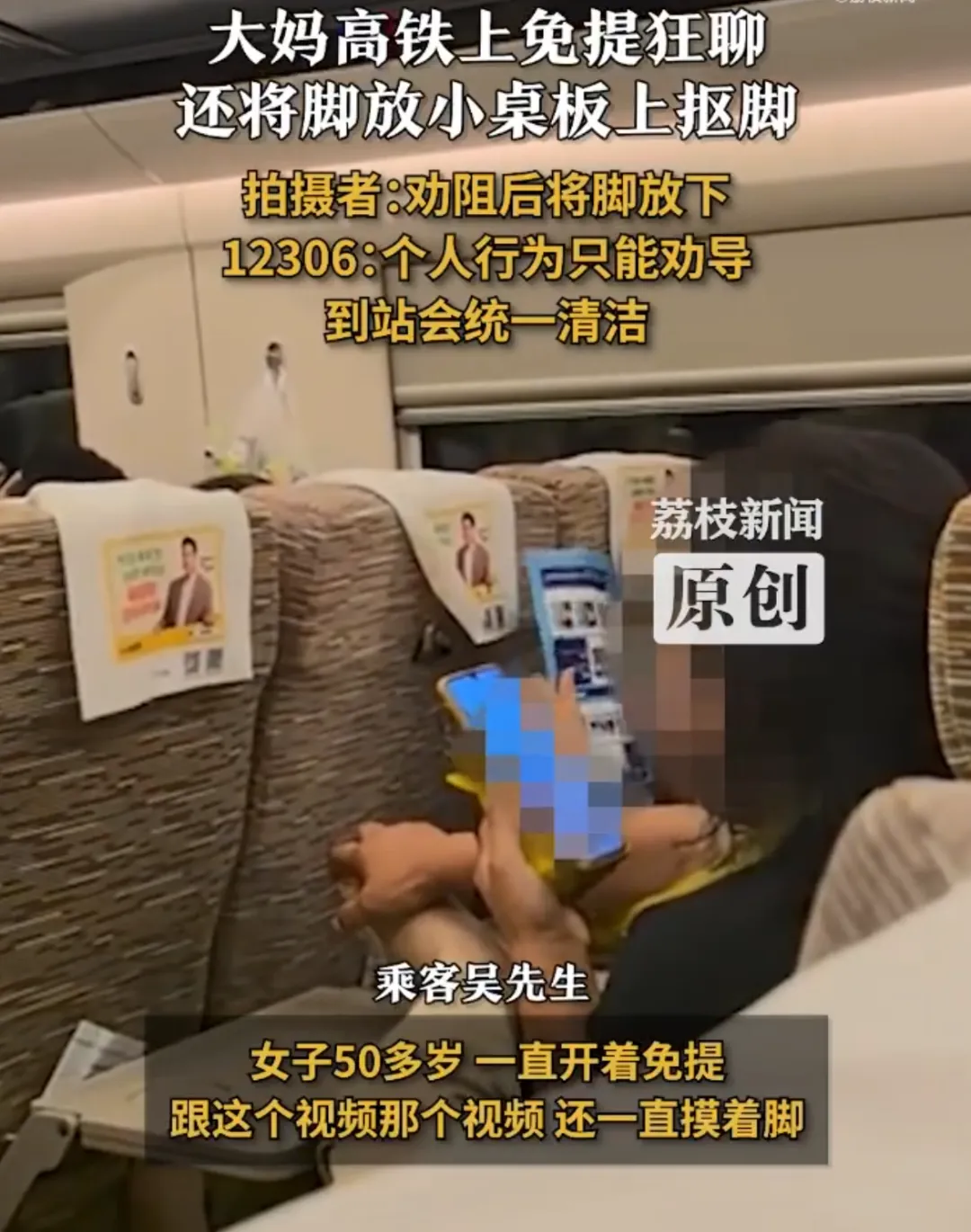 此前,就有乘客把腳搭在小桌板上,或者拖鞋直接踩高鐵座椅的報道。