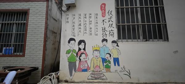 百色市弄耀村,村民用牆繪宣傳移風易俗。 江暢/攝