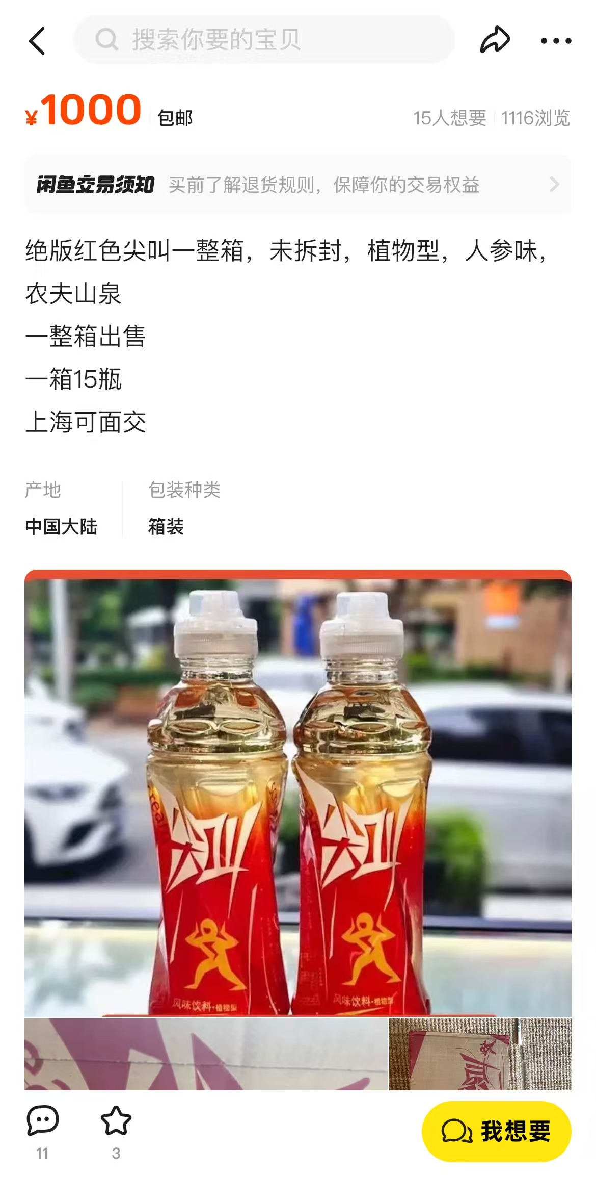 另一位銷售整箱紅色“尖叫”的上海賣家則表示,目前手中有兩箱完整貨品,但僅出售一箱,絕版收藏品不接受還價,目前包郵1000元,上海可面交。