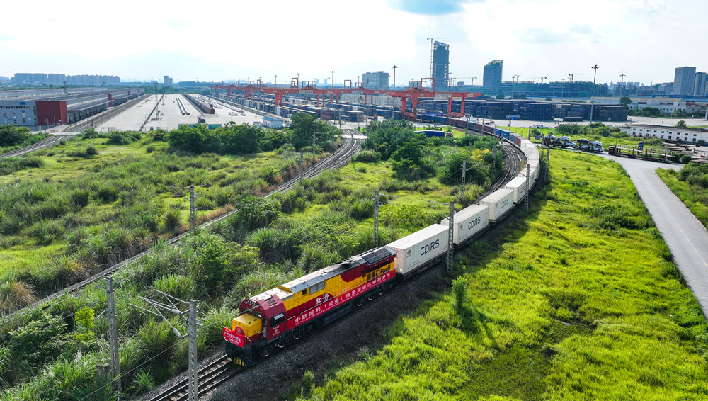 一列滿載半成品液晶電視及齊套散件的中歐班列從成都鐵路樞紐城廂站開出,向着歐洲駛去。 東方IC