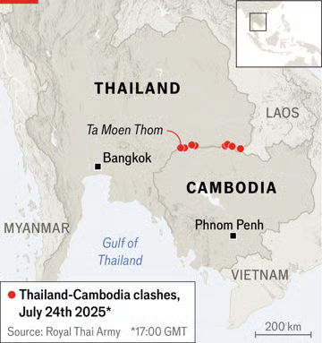 7月24日清晨,泰國邊防軍發現,全副武裝的柬埔寨士兵,開始向泰國封鎖邊境的鐵絲網移動,泰軍陣地上出現了嗡嗡作響的無人機。隨後,兩國軍人爆發了槍戰。