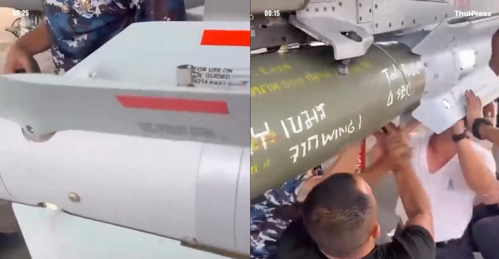 截至目前從公開渠道可獲知的信息,泰國空軍出動的全部為第1飛行聯隊的F-16戰機,該聯隊駐地呵叻空軍基地,是距離泰柬邊境衝突區域最近的基地。從社交媒體流傳的一些影像顯示,泰國F-16在此次衝突中使用了至少兩種加裝了制導套件的Mk82炸彈,其中一種是以色列埃爾比特公司的“蜥蜴Ⅲ”(Lizzard Ⅲ)激光制導套件,另一種則是韓國LIG Nex1公司的“韓國GPS制導炸彈”(Korean GPS-Guided Bomb,KGGB)滑翔制導套件。