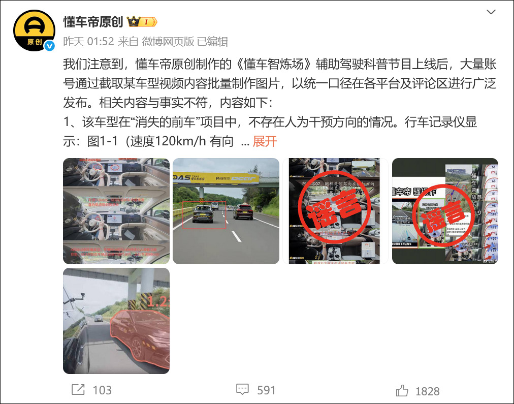 前一天,微博@懂車帝原創針對節目引起的爭議回應稱:部分賬號通過截取某車型視頻內容製作圖片,並在各平台及評論區廣泛傳播,但這些內容與事實不符。