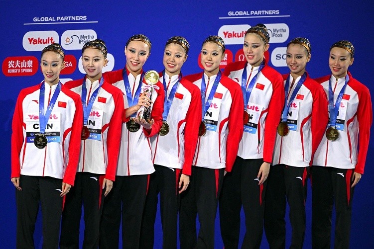 中國花樣游泳隊以老帶新,4位巴黎奧運冠軍坐鎮,半數隊員首次參加世錦賽,賽前中國花遊隊遭遇前所未有的困難,但運動員及教練團隊憑藉強大的精神意志和競技水平,完成全部項目競賽,包攬了集體三個單項的金牌。