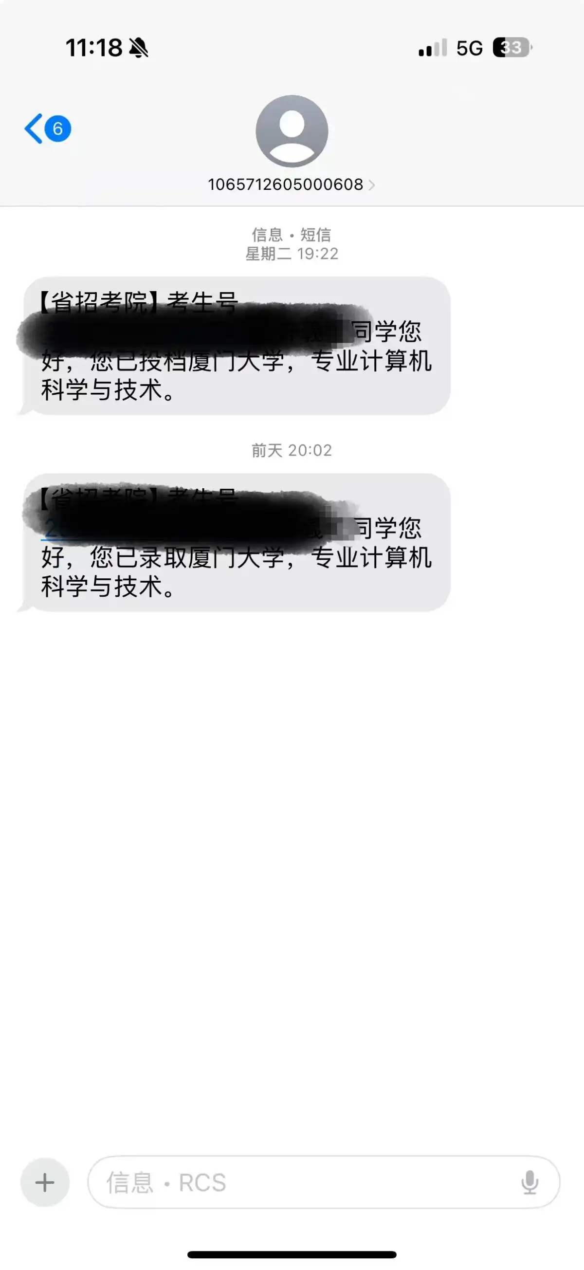 他介紹,當時一名工作人員讓他們寫下相關問題稱要請示領導,並未對考生的質疑和退檔的申請做出回應,“當時我們去招生院的時候是預錄取,可以申請在招生院退檔”。當晚,陳莊再次收到了貴州招生考試院的通知短信,稱您已錄取廈門大學,專業計算機科學與技術”。