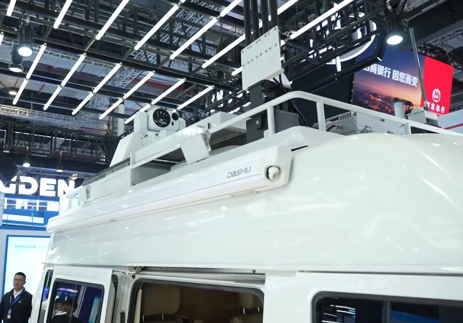 這多虧了車頂安裝的“反無人機全家桶”:導航誘騙設備(可對3-8公里的無人機進行誘騙,實現對無人機的遙控器和飛行器之間的圖傳鏈路、通訊鏈路的阻塞式干擾);光電識別跟蹤設備(可對無人機進行光學手段的識別、探測、確認);雷達探測設備(可以對空中任意方向飛來的無人機進行同時探測);無線電偵測設備(可實現不小於5公里的無線電偵測)。