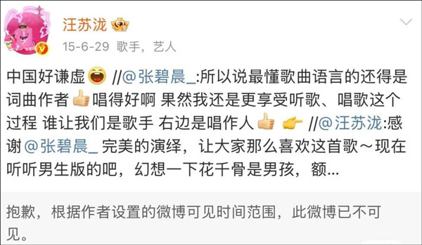 彼時,雙方不僅沒有原唱爭議,張碧晨還在微博轉發宣傳汪蘇瀧版本,認可對方作為創作者最懂歌曲語言。