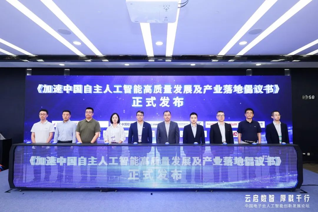 在論壇最後,中國電子雲聯合北京國家金融科技風險監控中心、中國信通院人工智能研究所、上海張江數學研究院、中國長城、飛騰信息、海光信息、清程極智、趨境科技等共同發起《加速中國自主人工智能高質量發展及產業落地倡議》。