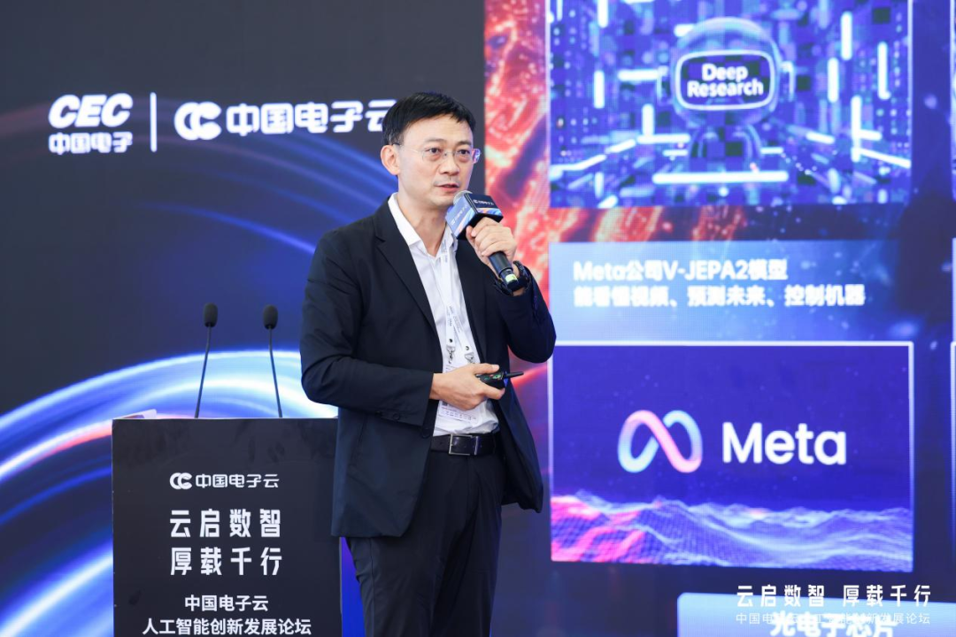 張成金在致辭時指出,發展新一代人工智能是國家重大戰略。上海市正搶抓戰略機遇,深化人工智能全產業鏈佈局。構建了全市智能算力資源統籌調度服務平台,2025年底智算供給能力將超10萬P;形成了獨具特色的“4個基礎模型+N個垂域模型”的發展路線;並在全市形成“一東一西、一軟一硬”差異化發展佈局。下一步,上海將通過構建高質量語料供給體系、加大重點垂直領域應用、創新應用生態構建等舉措加快建設人工智能“上海高地”。最後,他表示希望中國電子雲等各類創新主體,繼續發揮“自主可控”優勢,為助力上海打造人工智能世界級高端產業集羣貢獻更多力量!