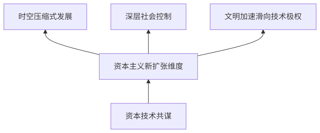 從風險資本主義到技術加速主義的演進,揭示了資本邏輯極致化的內在連續性:技術不再是獨立於資本的創新力量,而是被徹底納入資本增殖的閉環;權力結構從資本家壟斷轉向技術官僚集權;技術烏托邦則通過時間壓縮與主體替代,將資本的矛盾轉化為“人類進化”的必然代價。這種連續性不僅重塑了技術與社會的關係,更將資本主義的擴張性推向新的維度——在資本與技術的共謀中,人類文明正加速滑向一個由算法統治、技術壟斷與倫理真空主導的未來。