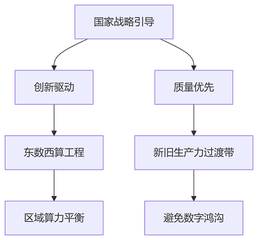 以 “創新驅動、質量優先” 為核心,2022年研發投入超3萬億元,培育新能源、量子科技等戰略產業,但強調 “新舊生產力長期共存” 。如東數西算工程平衡區域發展,避免數字鴻溝。