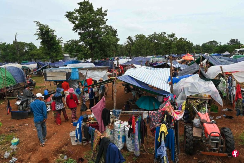位於柬埔寨邊境的奧多棉吉省,人們在簡陋的臨時避難所安身。法新社