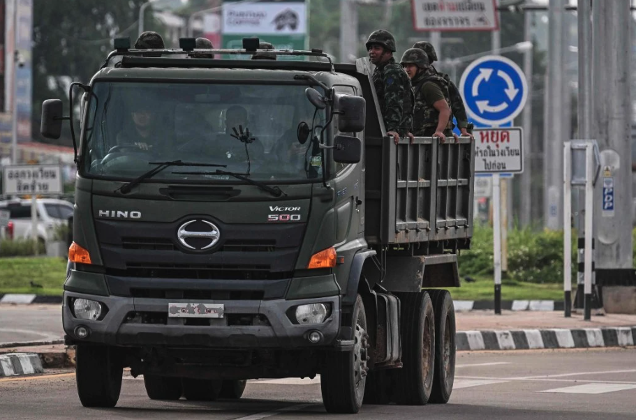泰國陸軍士兵乘車轉移 法新社