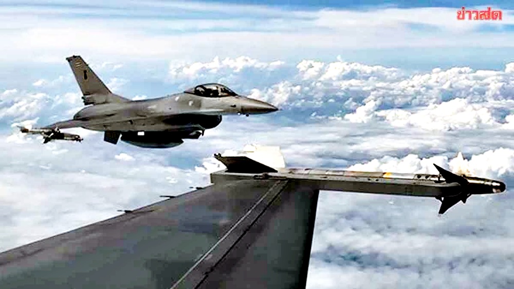 泰國空軍出動F-16戰機對柬埔寨軍事目標發起攻擊。泰媒Khaosod