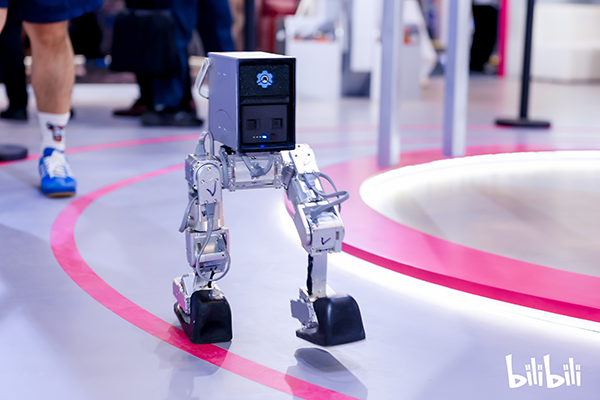 除了對B站的AI領域相關視頻的介紹外,B站在大會現場展示了UP主的AI及機器人作品。如UP主“AI研究室-帆哥”開發的AI高考機械臂,觀眾可以在現場與其進行對話,還能讓它現場作答高考題。UP主“同濟子豪兄”開發的馬拉松參賽機器人可以踢足球、“葉問蹲”,還能進行越野跑。