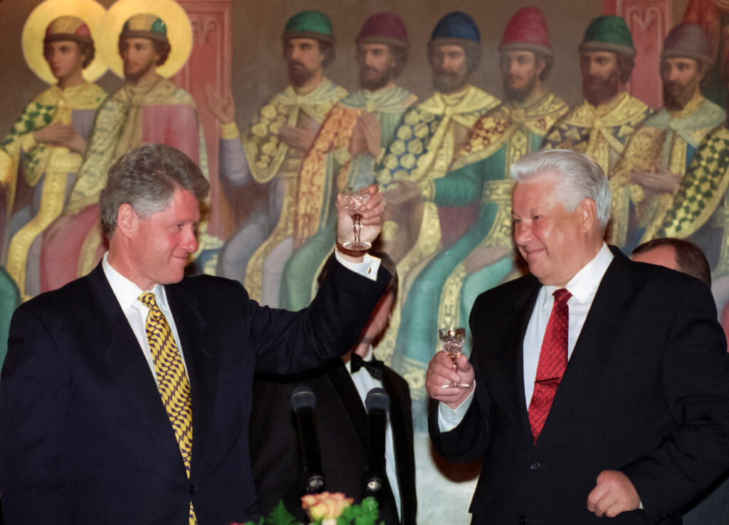 1995年,時任美國總統克林頓與俄羅斯總統葉利欽在克里姆林宮參加晚宴