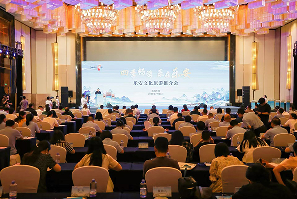 7月26日下午,2025“四季暢遊 樂在樂安”文化旅遊專場推介活動在南昌市紅谷灘區舉行。此次專場推介活動集資源推介、特色展示、互動體驗於一體,通過“室內推介+户外互動”雙場景聯動,全面推介樂安全域“四季宜遊”的鮮明特色,生動詮釋“樂在樂安”的品牌內涵,全方位展示樂安縣多舉措推進文體旅、文商旅、農文旅等融合發展的成效。
