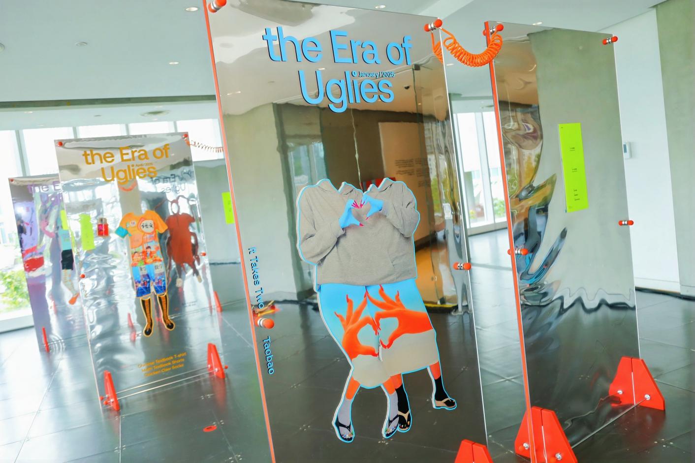 除了看展,展廳還特別設置了互動打卡區。雙頭連帽衞衣、閨蜜比心裙、知性套裝等歷屆網友打投的“醜衣服”,都成了對拍鏡的珍貴素材。擺好姿勢,享受無痛換裝,醜衣服不僅是新風格的嘗試,打卡照片也成為了社交平台上的流量密碼。