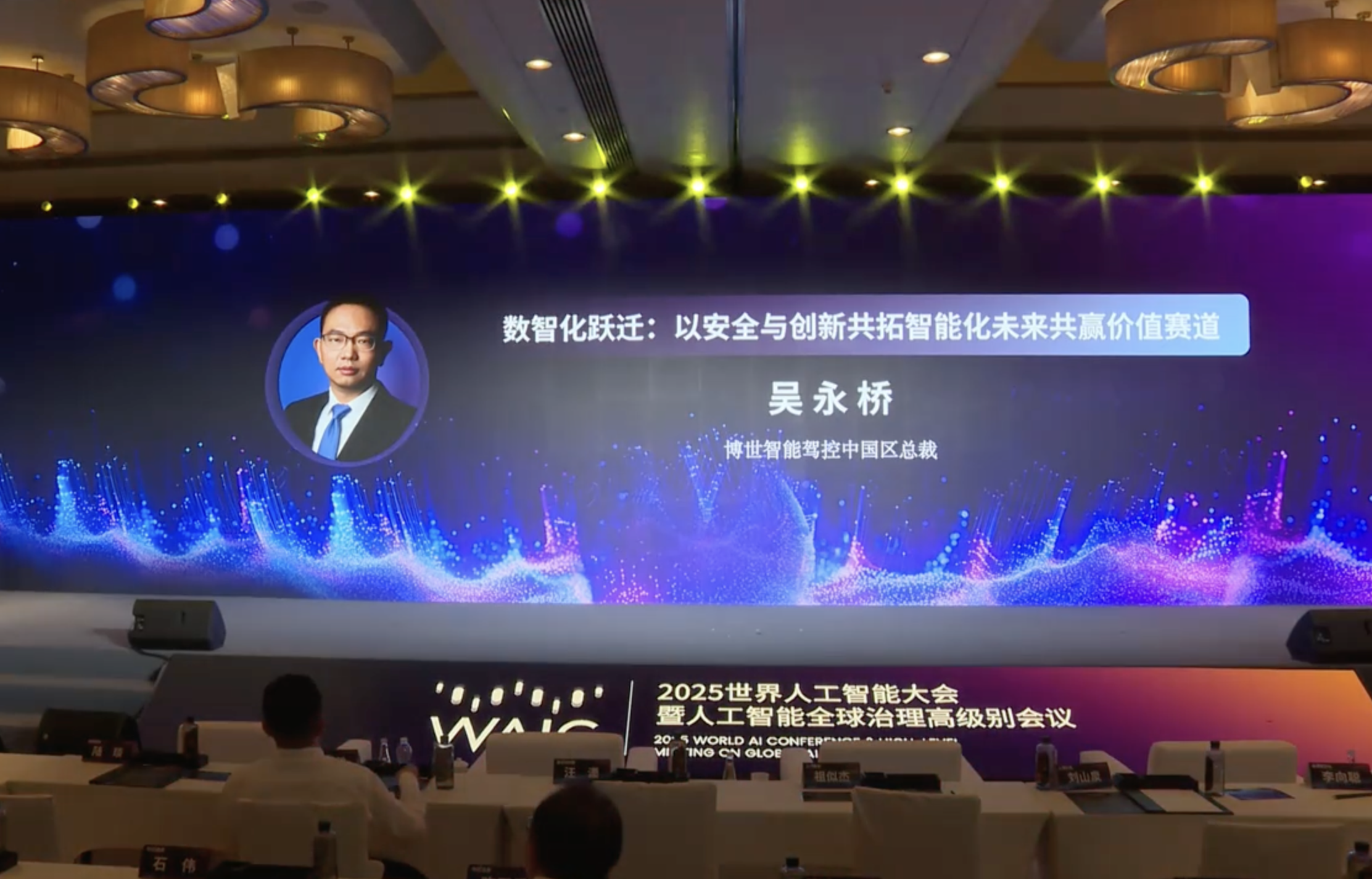 在7月26日開幕的2025世界人工智能大會上,博世智能駕控中國區總裁吳永橋就此分享。