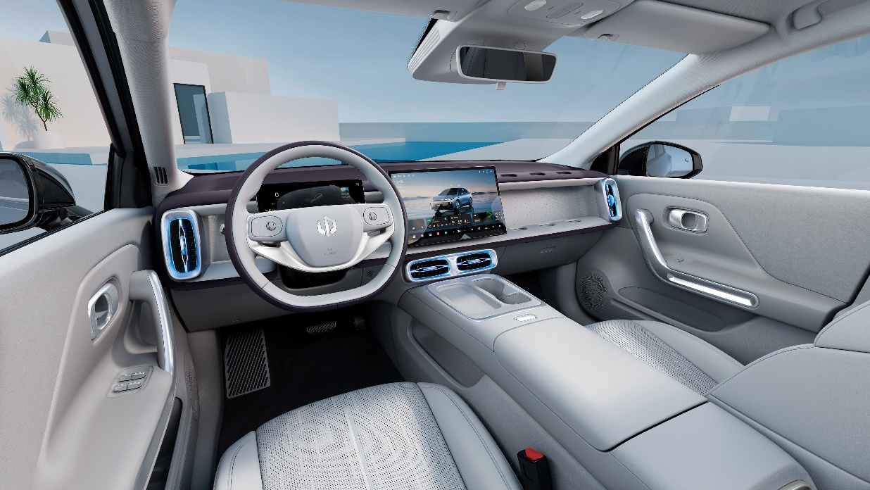 在續航方面,零跑B01提供43.9kWh、56.2kWh、67.1kWh三種電池容量選擇,對應CLTC續航里程分別為430km、550km及650km,可以覆蓋日常通勤至跨城出行的全場景需求。車輛搭載的27合1超級集成熱管理系統,整車佈置空間節省約30%、系統減重15%,百公里電耗低至11.4kWh,綜合續航提升10%。