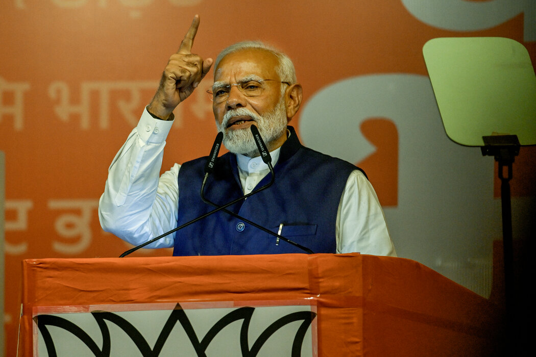 勝選後的莫迪在印人黨總部向支持者發表講話。 圖自《紐約時報》