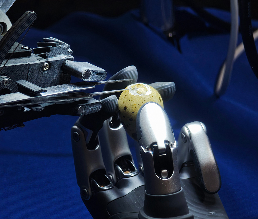 就在非夕關東煮攤位的隔壁,雲百生的手術機器人正在一絲不苟地剝着鵪鶉蛋的蛋殼,並實現將蛋殼碎片完整取下,而內層蛋膜毫髮無傷,引來觀眾們的紛紛讚歎。