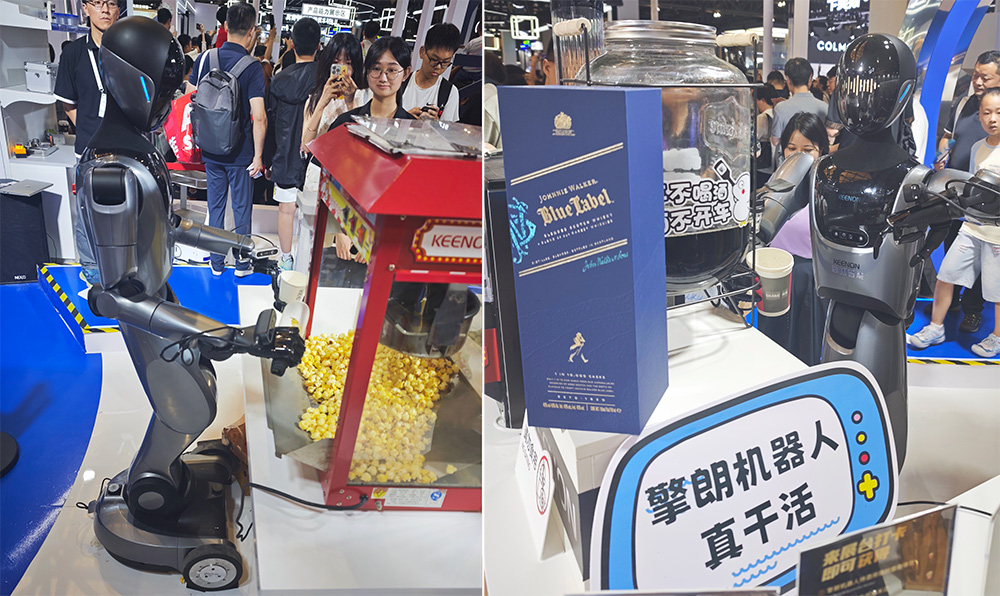 擎朗機器人XMAN-R1在自主展區為觀眾手鏟爆米花、調製雞尾酒。 觀察者網