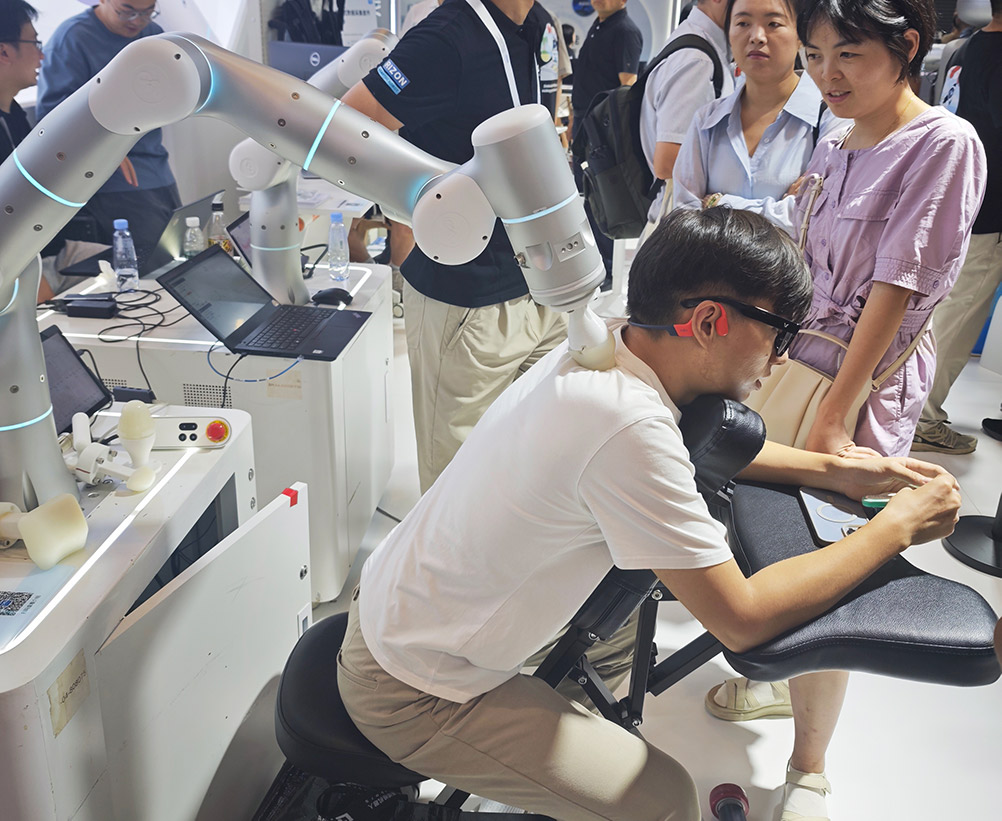 在非夕科技的展台,不少觀眾體驗了機器人中醫按摩服務。據介紹,這套機器人按摩設備與數採系統相結合,依託自適應機器人遙操作應用,可精準採集指柔、指撥、掌揉等專業按摩手法數據,打通按摩手法從“經驗表達”到“數據驅動”的路徑,實現“人類技藝”向“機器現實”的無縫遷移,為後續模型訓練和智能復現提供具身數據基礎。