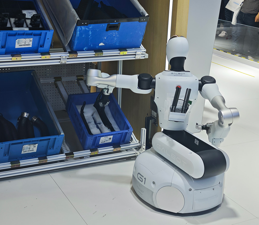 銀河通用在本次展會則帶來了當家產品Galbot,展現了在零售、工業、物流等多維領域的落地場景。