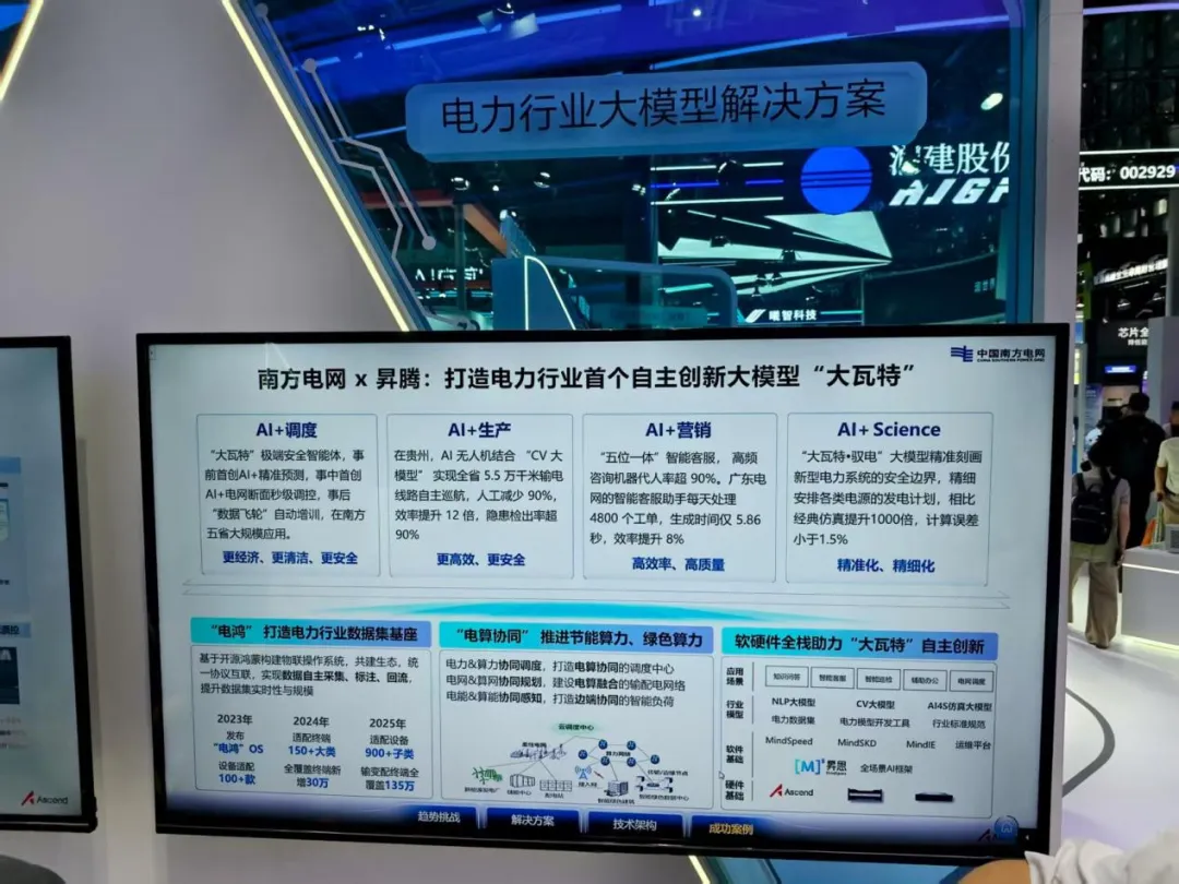 昇騰還深度融入實體產業,賦能更多領域。例如在醫療場景,昇騰+DeepSeek智慧醫療應用一體化解決方案,已在瑞金醫院、華西醫院、中山眼科等多家醫療機構落地,覆蓋醫學科研、輔助診斷、院區管理等多個核心場景;在電力領域,昇騰助力南方電網打造電力行業首個開放創新大模型“大瓦特”;在建材領域,昇騰助力海螺水泥打造建材行業大模型……