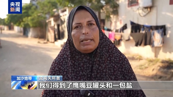 流離失所者:我們得到了鷹嘴豆罐頭和一包鹽,這就是我得到的,這是錯誤的。聯合國近東救濟工程處本應該負責接收和分發物資,現在這樣,有人能得到,有人得不到,這是不對的。