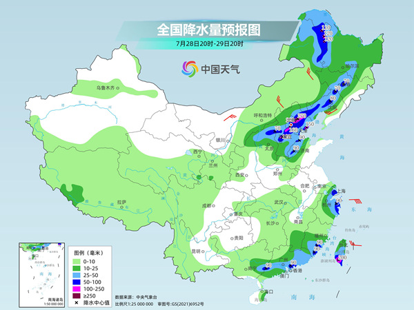 28日20時至29日20時全國降水量預報圖 中國天氣網
