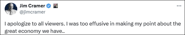 此後,克萊默還在社交平台上發文“向所有觀眾道歉”,“在表達我關於我們偉大經濟的觀點時,我過於激動了”。