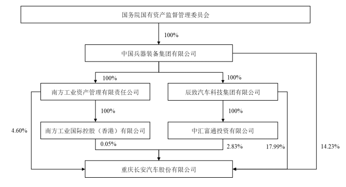此前,兵裝集團直接持有長安汽車14.23%的股份,並通過辰致集團、中匯富通投資有限公司、南方工業資產管理有限責任公司、南方工業國際控股(香港)有限公司間接持有長安汽車25.46%的股份,合計持有長安汽車總股本的39.69%。