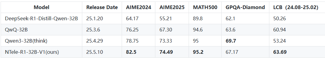 在開源的6個大模型中,NTele-R1-32B-V1電信大模型成為焦點。該模型基於DeepSeek-32B-Distill架構訓練,僅用800個精心篩選的樣本(含400個數學問題與400個代碼任務),就在多項權威測評中實現對行業標杆模型的超越。數據顯示,其在AIME2024測評中得分82.5,超越Qwen3-32B的78.75;在MATH500測試中準確率達95.2%,領先同類模型1-2個百分點。這種“小樣本高效訓練”能力,為降低AI開發成本提供了全新範式。 中興通訊AI研發中心負責人解釋:“NTele-R1-32B-V1 是從 DeepSeek-32B-Distill訓練的,實現了‘少而精’的訓練效果。”目前,該數據集已同步開源,開發者可直接獲取用於模型優化。