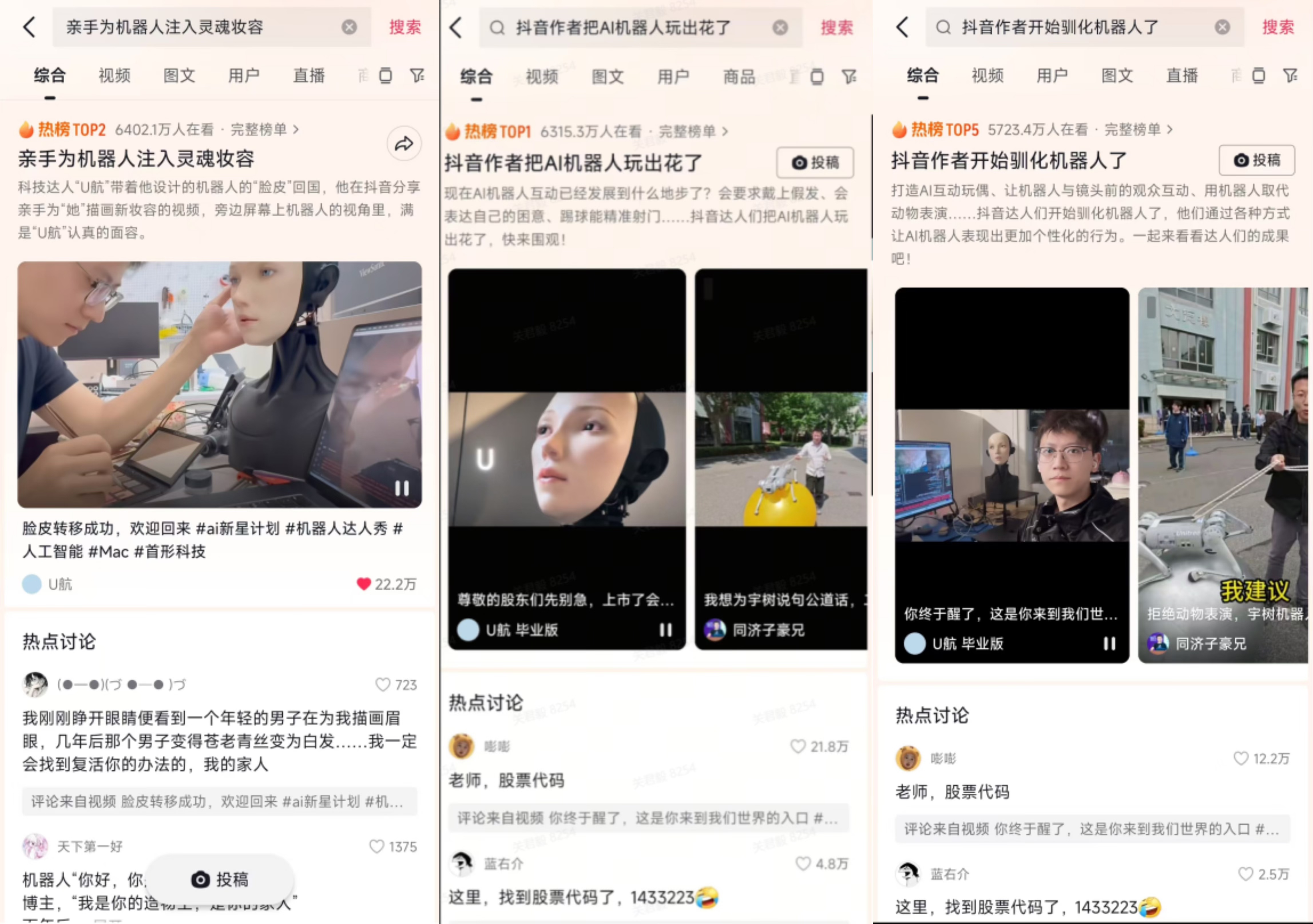 這些來自生活的智慧,讓機器人的進化始終紮根於真實需求。助推其系列視頻總播放量達到約1.5億次,並多次登上抖音熱榜,不斷點燃着社區的科技互動氛圍。