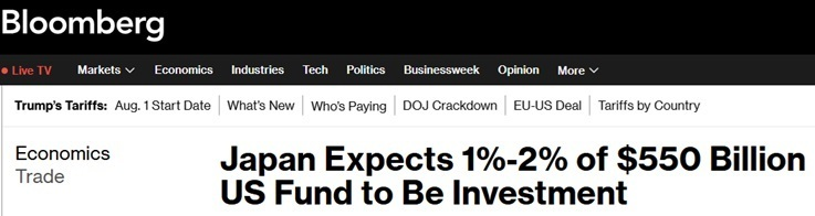 7月28日,日本首席談判代表赤澤亮正表示,所謂5500億的“投資”,日本預計其近期與美國達成的5500億美元資金框架中,實際投資佔比僅1%至2%,其餘絕大部分將以貸款形式存在。