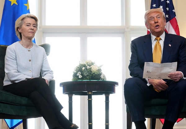 7月27日,特朗普與馮德萊恩在蘇格蘭會面,宣佈美歐達成協議。 視覺中國