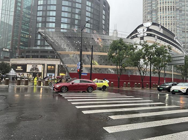 7月30日16時許,“路易號”附近路面有一定積水,船體未見排水口。澎湃新聞