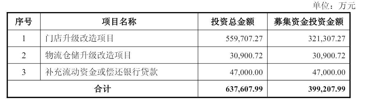 具體而言,永輝超市計劃將其中的32.1億元用於門店升級改造項目,3.09億元用於物流倉儲升級改造項目,4.7億元用於補充流動資金或償還銀行貸款。
