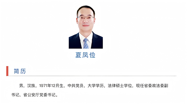 值得注意的是,今年7月8日,山東省公安廳網站“領導信息”欄目更新顯示,雅安市委原書記夏鳳儉已任山東省委政法委副書記、省公安廳黨委書記。