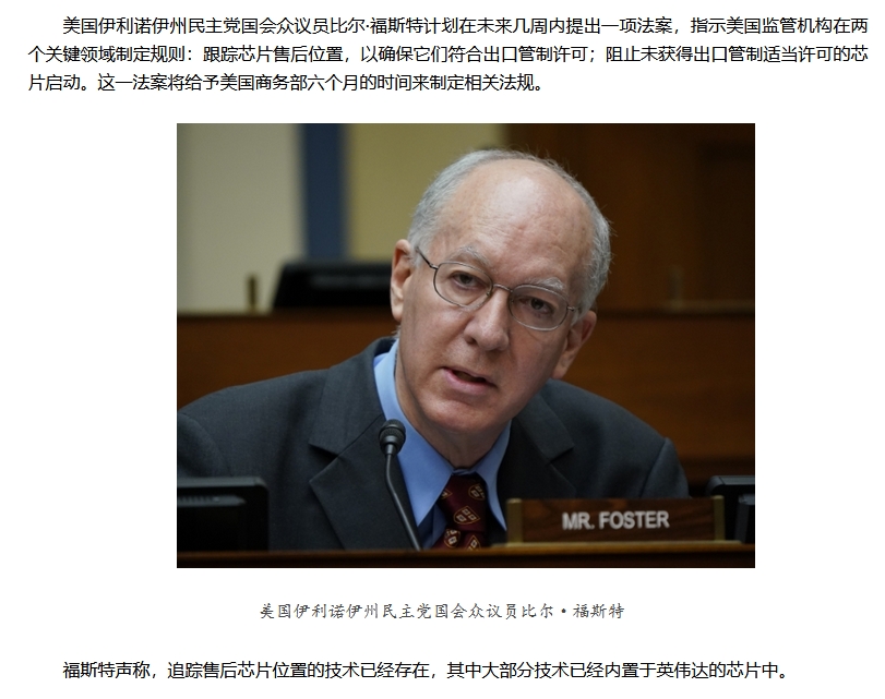 其中直接原因就是美國國會議員公開宣稱,在賣給中國、乃至全世界的人工智能芯片中都通過裝GPS定位和其他一些技術手段,以確保芯片只賣給了正式説明的終端用户。隨即又有專家出來證實,現在美國可以在技術上做到監控芯片位置和遠程關閉,不僅如此,這樣的“後門”還能讓美國遠程讀取芯片上正在跑的數據,一旦發行“不合規”就有能力將其“關閉”。