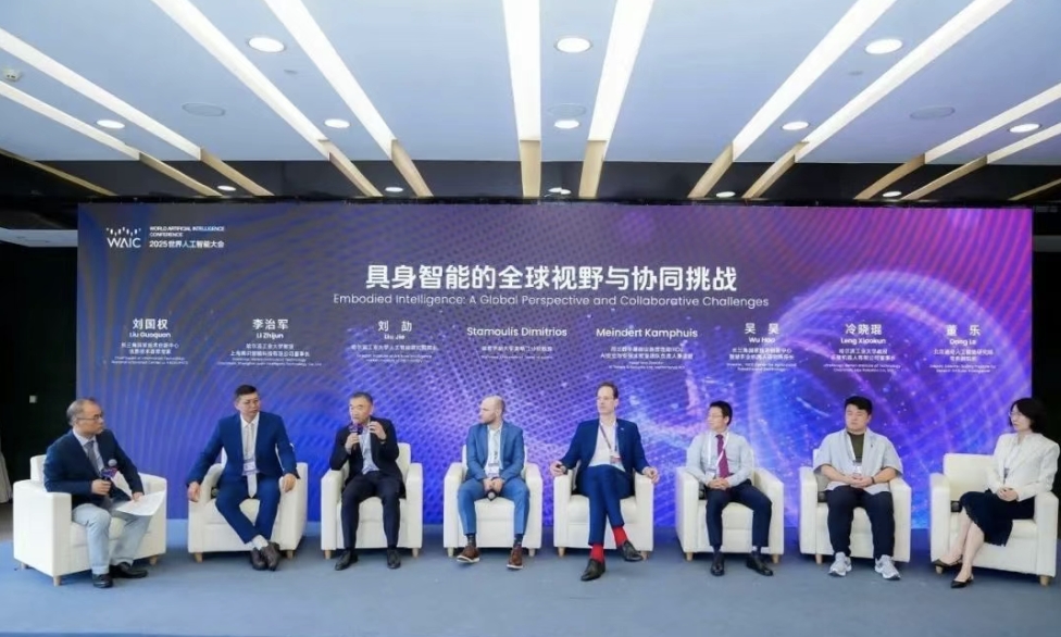 論壇的高峯對話環節,哈爾濱工業大學教授,上海具識智能科技有限公司董事長李治軍、哈爾濱工業大學人工智能研究院院長劉劼、德克薩斯大學奧斯汀分校教授Stamoulis Dimitrios、長三角國家技術創新中心信息技術首席專家劉國權、荷蘭數字基礎設施管理局(RDI)AI安全與安保實驗室團隊負責人兼主管Meindert Kamphuis、長三角國家技術創新中心智慧農業機器人研究所所長吳昊、哈爾濱工業大學教授、樂聚機器人有限公司董事長冷曉琨、北京通用人工智能研究院副院長董樂等,中、美、英等國學者、荷蘭政府代表、長三角國創中心等機構負責人及頭部企業領袖,以“具身智能的全球協作與生態共建”為主題,探討算法研發到場景落地的全鏈條瓶頸與政策支持方案。