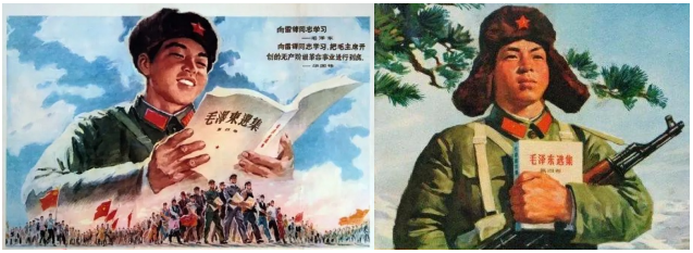改革開放初期的雷鋒宣傳畫,右圖甚至把槍也從“波波莎”換成(當時最新的)56衝了
