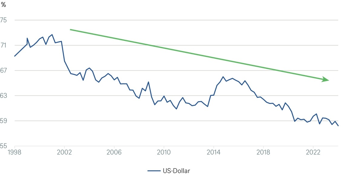 美元在國際貨幣儲備中的份額大幅下降國際貨幣基金組織