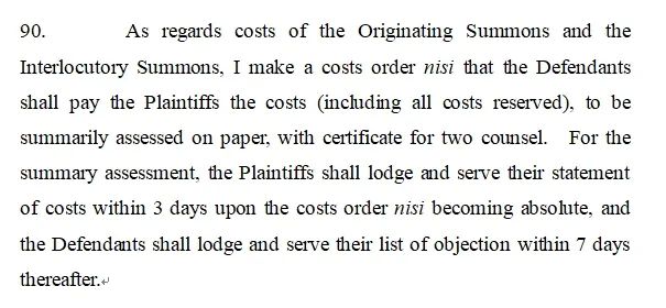 另據直新聞駐港記者從香港法院網站的判決書瞭解到,法庭要求被告(宗馥莉)向原告(宗馥莉“三個弟妹”)支付相關訴訟費。有香港律師向記者表示,這意味着,單就該起訴訟而言,表明被告輸了,原告贏了。