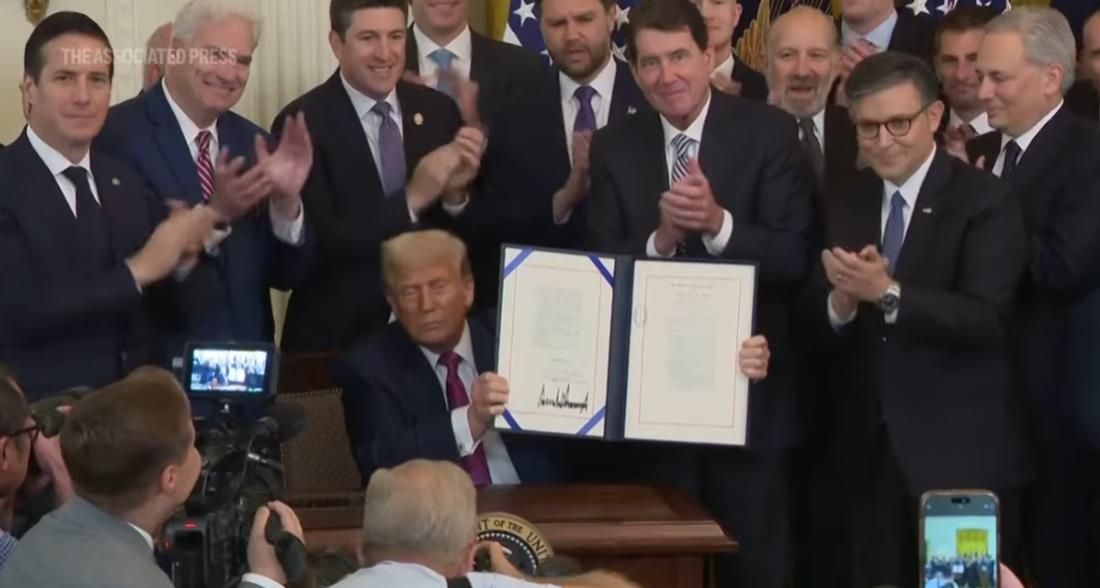 當地時間7月18日,美國總統特朗普簽署GENIUS法案(指導與建立美國穩定幣國家創新法案) 視頻截圖