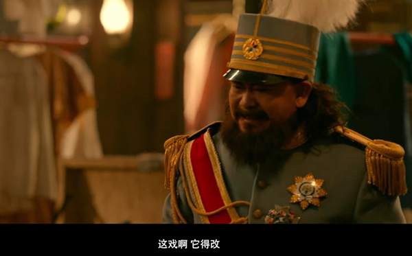 因為不認識名角金嘯天(尹正 飾),大帥對大嗓兒一臉崇拜。一個敢講,一個敢信,半吊子票友把完全不懂戲的大帥唬得一愣一愣。