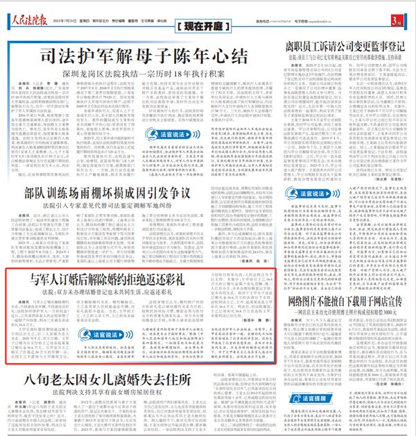 與軍人訂婚後解除婚約關係,只同意返還車輛,不同意返還彩禮,法院如何保護軍人一方的權益?近日,江蘇省泗洪縣人民法院審理了一起財產糾紛案,判決三名被告返還彩禮16.6萬元。