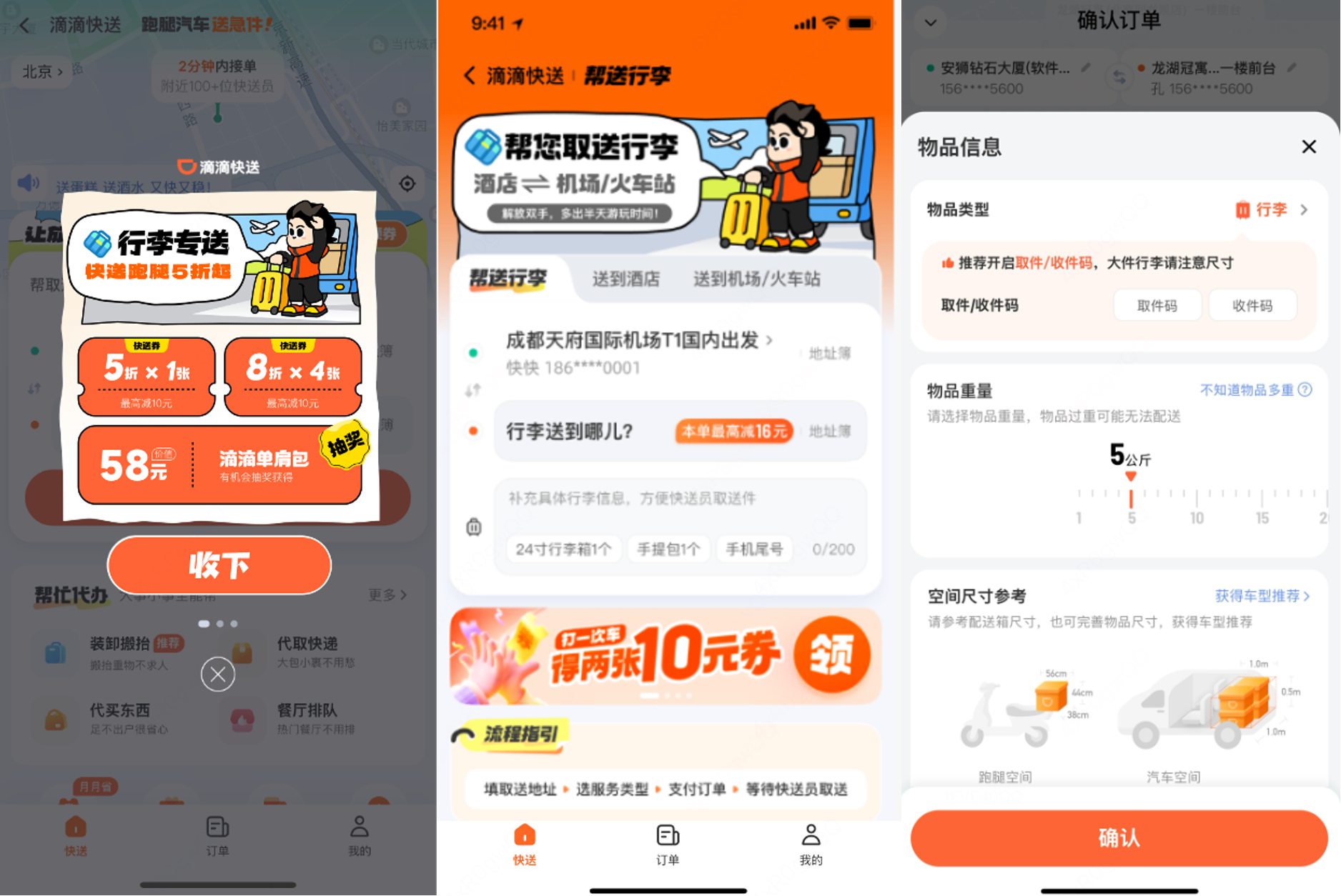 (滴滴快送行李專送頁面)